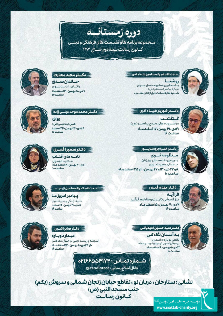 اعلام برنامه‌های فرهنگی و دینی کانون رسالت | هفته دوم بهمن‌ماه (۱۱ تا ۱۵ بهمن)