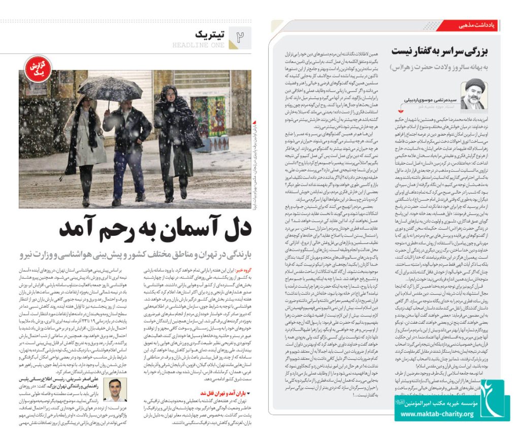یادداشتی با عنوان «بزرگی سراسر بهگفتار نیست» به بهانه سالروز ولادت حضرت زهرا (س) و به قلم حجتالاسلام سیدمرتضی موسویاردبیلی، استاد حوزه علمیه قم و امام جماعت مسجد امیرالمؤمنین (ع)، در روزنامه هممیهن چاپ شد.