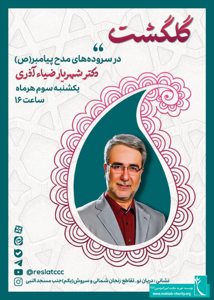 به گزارش روابطعمومی مؤسسه خیریه مکتب امیرالمؤمنین (ع)، این نشست ادبی با حضور دکتر شهریار ضیاء آذری، استاد دانشگاه و پژوهشگر ادبیات فارسی، روز یکشنبه سوم هر ماه ساعت ۱۶ در تالار فیروزه کانون رسالت برگزار خواهد شد. موضوع اصلی این برنامه، بررسی جلوههای معرفتی و ادبی در شعر نبوی و مدایح پیامبر اسلام (ص) است.