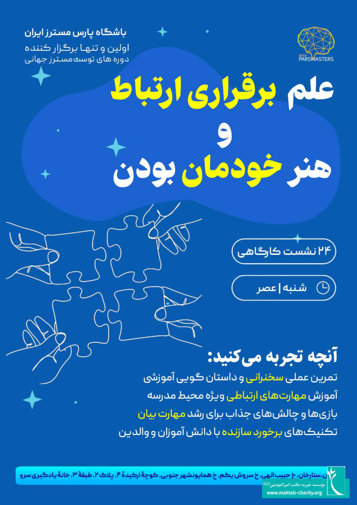 کارگاه مهارتهای ارتباطی و رهبری با همکاری پارسمسترز ایران و خانه یادگیری سرو، روز پنجشنبه ۱۵ آذر ۱۴۰۴ از ساعت ۱۵ تا ۱۷ برگزار میشود.