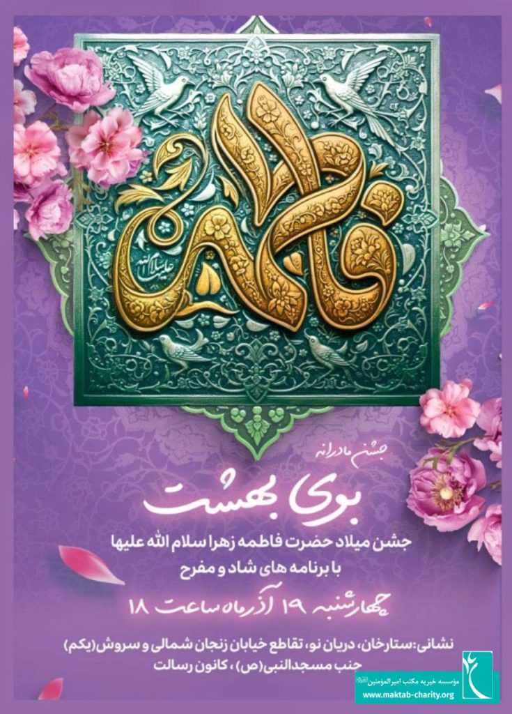 جشن ولادت حضرت فاطمه زهرا (س) روز چهارشنبه ۱۹ آذر ۱۴۰۴ ساعت ۱۵ در مسجد نور قیطریه برگزار میشود. به گزارش روابطعمومی مؤسسه خیریه مکتب امیرالمؤمنین (ع)، این مراسم ویژه خواهران است و با سخنرانی خانم دکتر محمدیان و مدیحهسرایی خانم آقایانی همراه خواهد بود. در حاشیه مراسم، بازارچه خیریه و برگزاری مسابقه نیز برنامهریزی […]