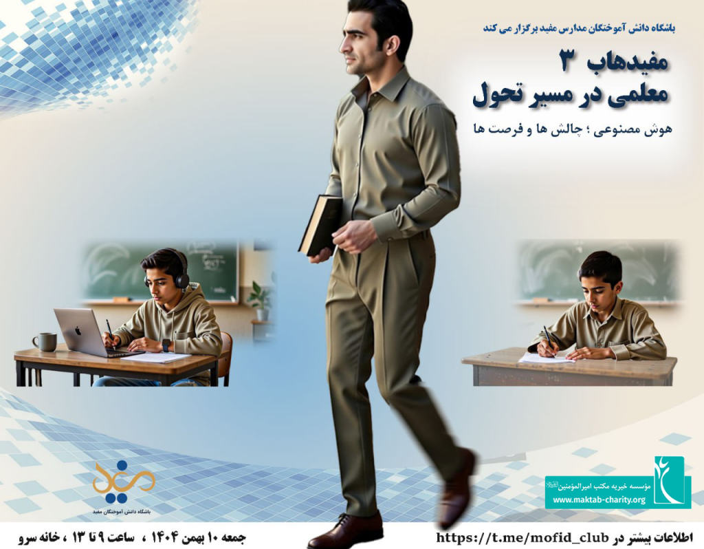 سومین رویداد «مفیدهاب» با عنوان «معلمی در مسیر تحول؛ هوش مصنوعی، چالشها و فرصتها» روز جمعه ۱۰ بهمنماه از ساعت ۹ تا ۱۳ در خانه سرو برگزار میشود. به گزارش روابطعمومی مؤسسه خیریه مکتب امیرالمؤمنین (ع)، این رویداد با تمرکز بر تأثیر هوش مصنوعی بر آموزش و نقش معلمان در مواجهه با تحولات فناورانه طراحی […]