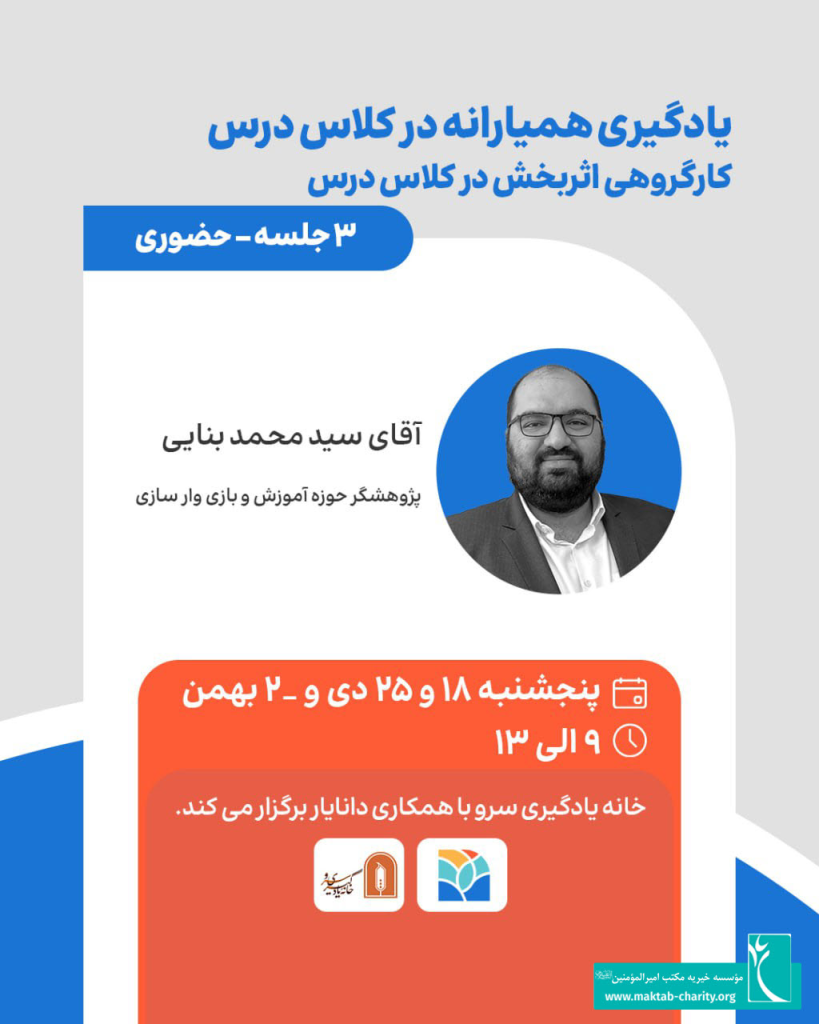 خانه یادگیری سرو با همکاری مجموعه دانایار دوره آموزشی «یادگیری همیارانه در کلاس درس» را ویژه معلمان برگزار میکند. به گزارش روابطعمومی مؤسسه خیریه مکتب امیرالمؤمنین (ع)، این دوره در روزهای پنجشنبه ۲۵ دیماه، ۲ و ۹ بهمنماه از ساعت ۹ تا ۱۳ در خانه یادگیری سرو برگزار خواهد شد. محور اصلی دوره، آشنایی با […]