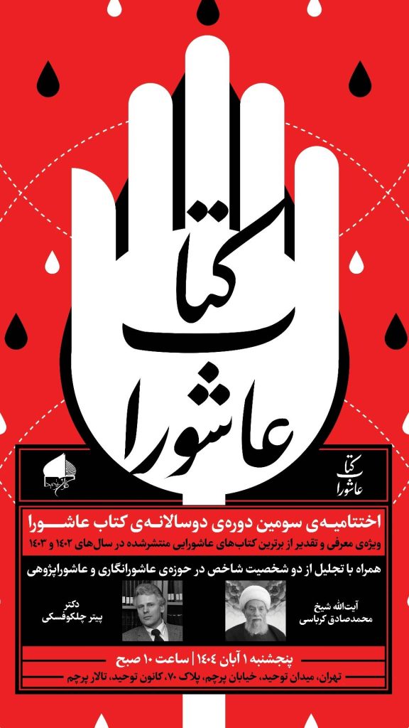 اختتامیهی سومین دورهی دوسالانهی «کتاب عاشورا» معرفی و تقدیر از برترین کتابهای عاشورایی منتشرشده در سالهای ۱۴۰۲ و ۱۴۰۳ با همکاری و میزبانی کانون توحید برگزار میشود. همچنین این مراسم همراه با تجلیل از آیتالله شیخ محمدصادق گرجی و دکتر پیتر چلکوفسکی دو چهرهی شاخص در حوزهی عاشوراپژوهی و عاشورانگاری خواهد بود. زمان : پنجشنبه […]